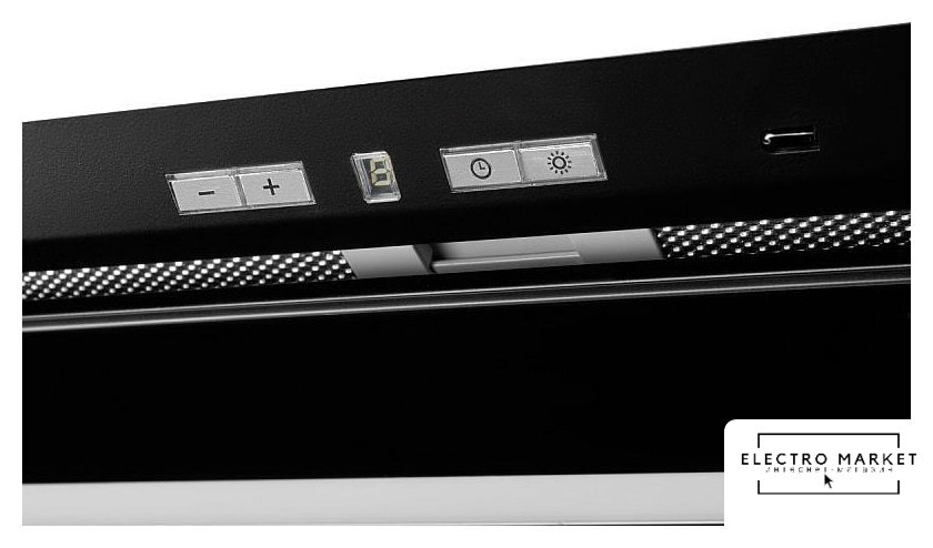 конструкция Т-образная, монтаж настенный, ширина 90 см, управление сенсорное, производительность мотора 800 м³/ч, цвет нержавеющая сталь