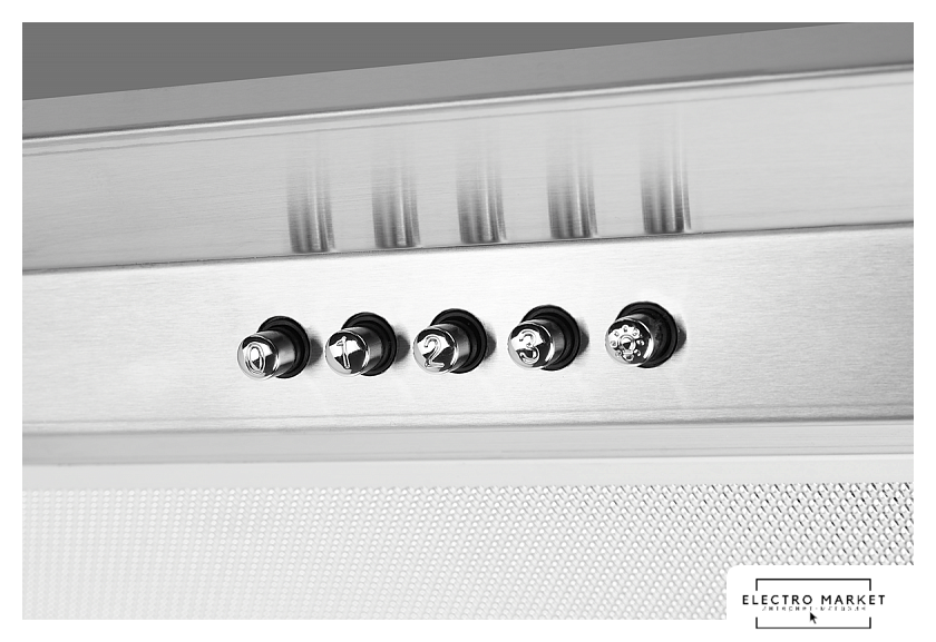 конструкция купольная, монтаж настенный, ширина 60 см, управление механическое/кнопочное, производительность мотора 750 м³/ч, цвет нержавеющая сталь