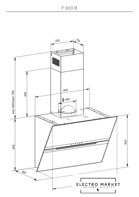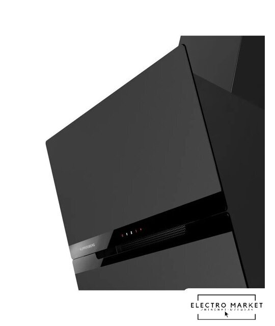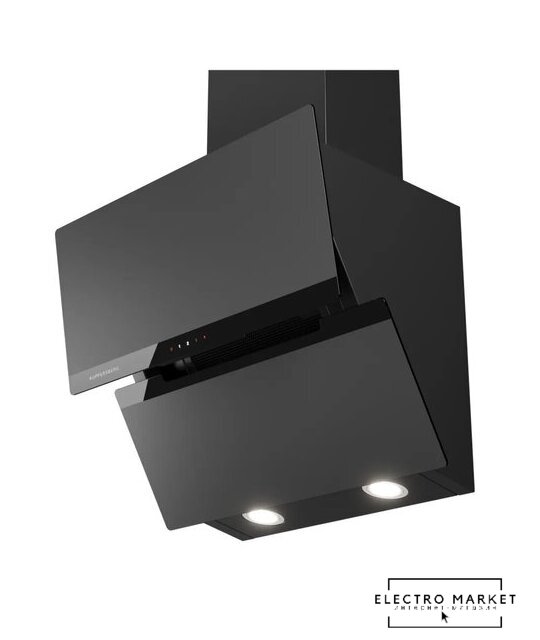 конструкция Т-образная, монтаж настенный, ширина 60 см, управление механическое/поворотный переключатель, производительность мотора 1050 м³/ч, цвет черный