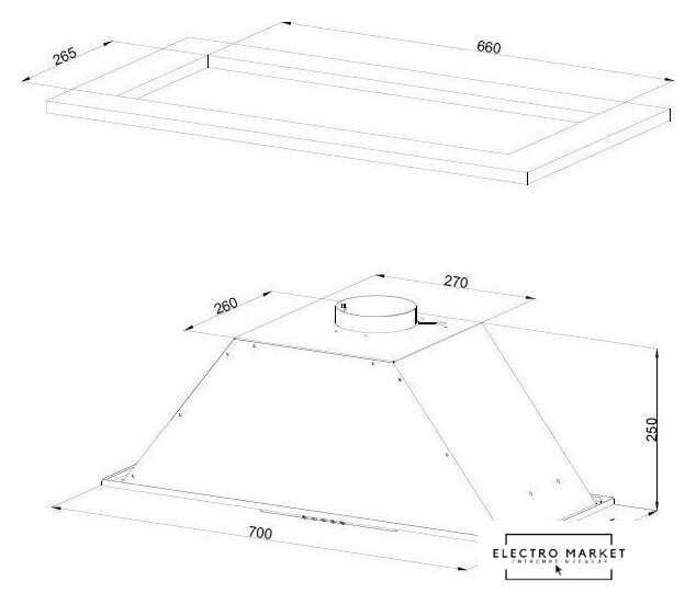 конструкция наклонная, монтаж настенный, ширина 60 см, управление электронное, производительность мотора 1050 м³/ч, цвет черный