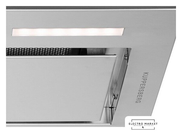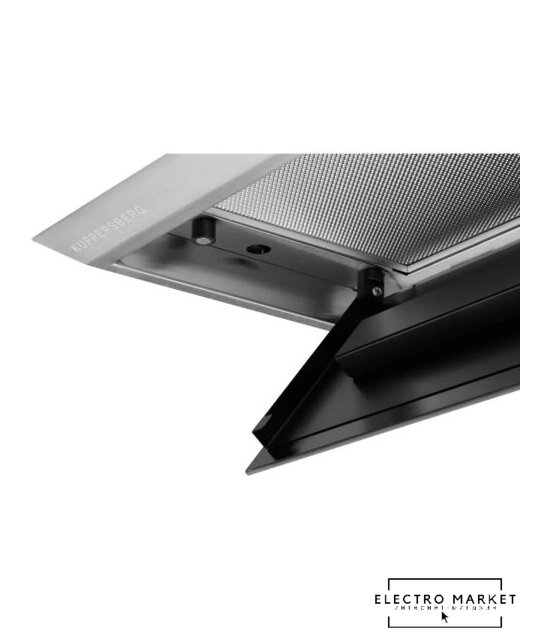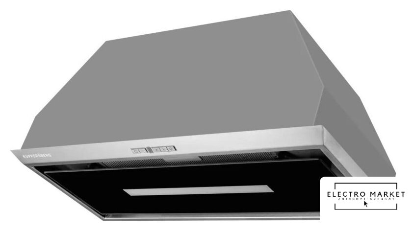 конструкция Т-образная, монтаж настенный, ширина 89.8 см, управление электронное/кнопочное, производительность вытяжки 540 м³/ч, производительность мотора 1200 м³/ч, цвет нержавеющая сталь