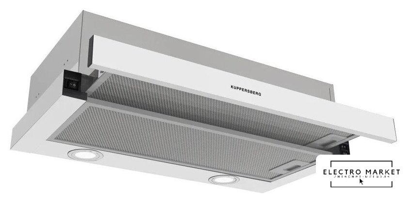 конструкция скрытая, монтаж для встраивания, ширина 59.8 см, управление механическое/кнопочное, производительность мотора 850 м³/ч, цвет нержавеющая сталь