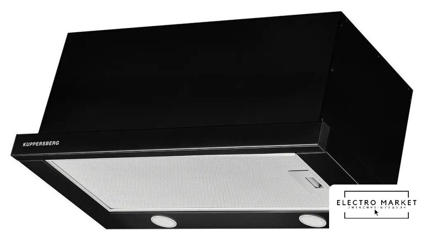 конструкция наклонная, монтаж настенный, ширина 59.5 см, управление сенсорное, производительность вытяжки 1000 м³/ч, производительность мотора 1000 м³/ч, цвет черный