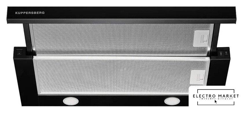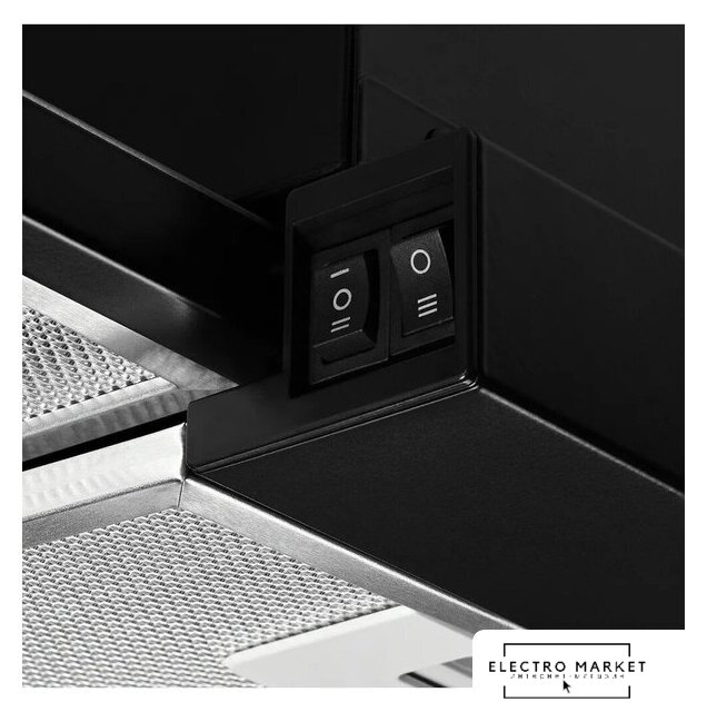 конструкция телескопическая, монтаж для встраивания, управление механическое/кнопочное, производительность мотора 650 м³/ч, ширина 89.8 см