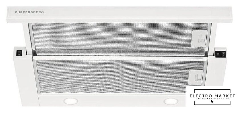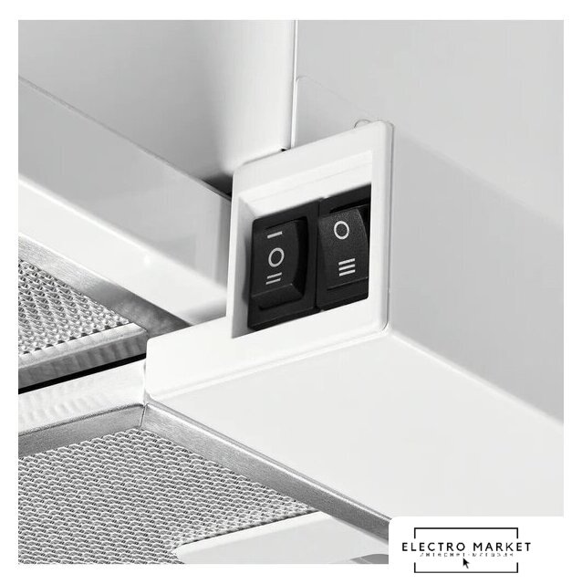 конструкция купольная, монтаж настенный, управление механическое/кнопочное, производительность мотора 400 м³/ч, ширина 59 см