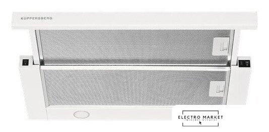конструкция скрытая, монтаж для встраивания, ширина 72.5 см, управление механическое/кнопочное, производительность мотора 1050 м³/ч, цвет белый