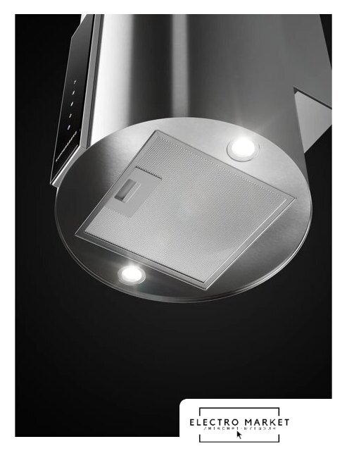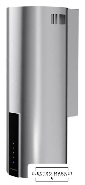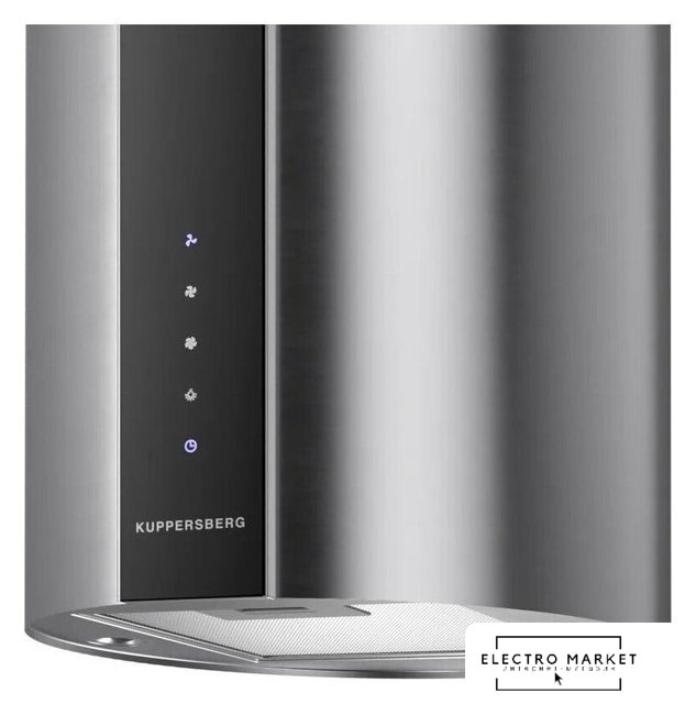 конструкция купольная, монтаж настенный, ширина 39 см, управление сенсорное, производительность мотора 1200 м³/ч, цвет черный