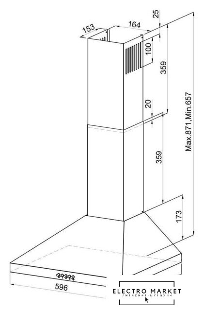 конструкция телескопическая, монтаж для встраивания, ширина 59.8 см, управление механическое/кнопочное, производительность вытяжки 336 м³/ч, производительность мотора 650 м³/ч, цвет нержавеющая сталь/серый