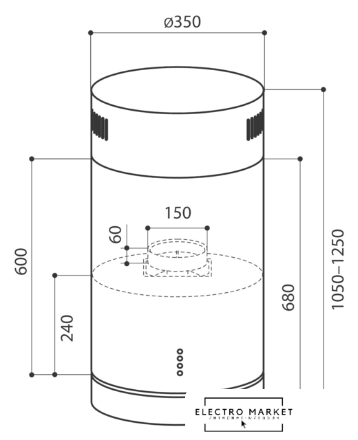 конструкция коробчатая, монтаж настенный, ширина 35 см, управление механическое/кнопочное, производительность мотора 1200 м³/ч, цвет золотой