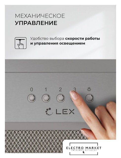 монтаж настенный, ширина 60 см, управление кнопочное, производительность вытяжки 600 м³/ч