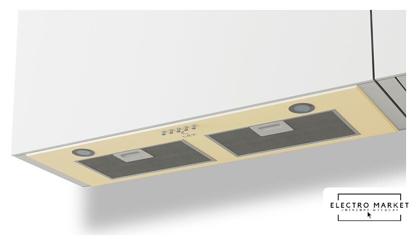 конструкция скрытая, монтаж для встраивания, ширина 60 см, управление механическое/кнопочное, производительность мотора 1100 м³/ч, цвет белый