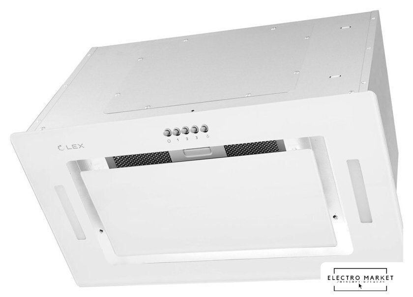 конструкция наклонная, монтаж настенный, ширина 59.5 см, управление сенсорное, производительность мотора 750 м³/ч, цвет белый