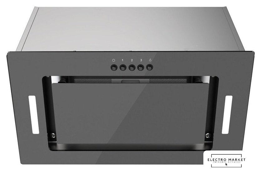 конструкция плоская, монтаж настенный, ширина 59.5 см, управление сенсорное/жестами, производительность вытяжки 750 м³/ч, цвет черный