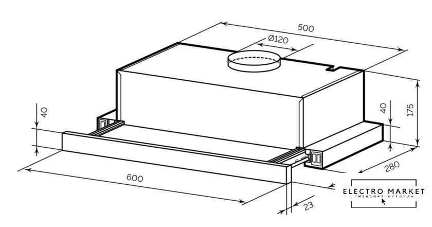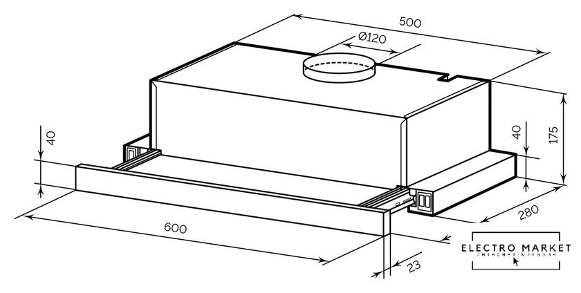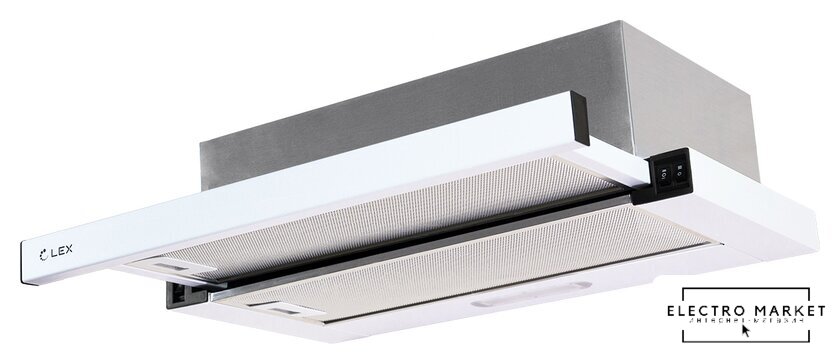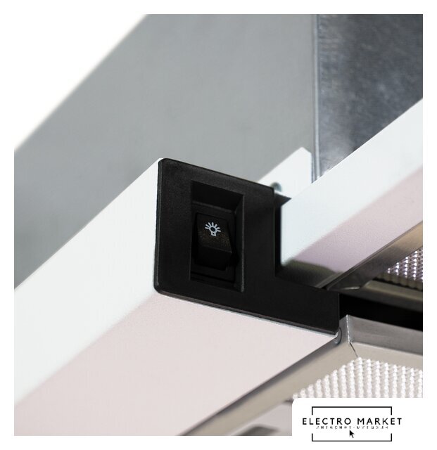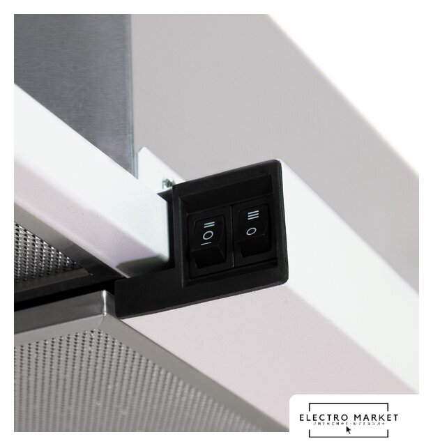 монтаж настенный, ширина 60 см, управление кнопочное, производительность вытяжки 600 м³/ч