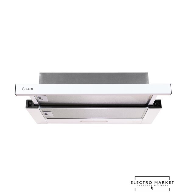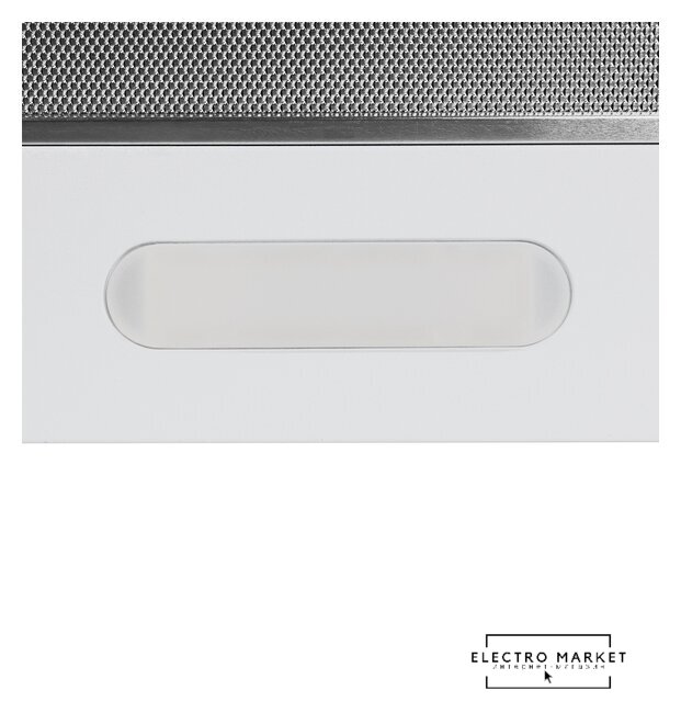 конструкция скрытая, монтаж для встраивания, ширина 52 см, управление сенсорное/жестами, производительность вытяжки 1100 м³/ч, цвет белый