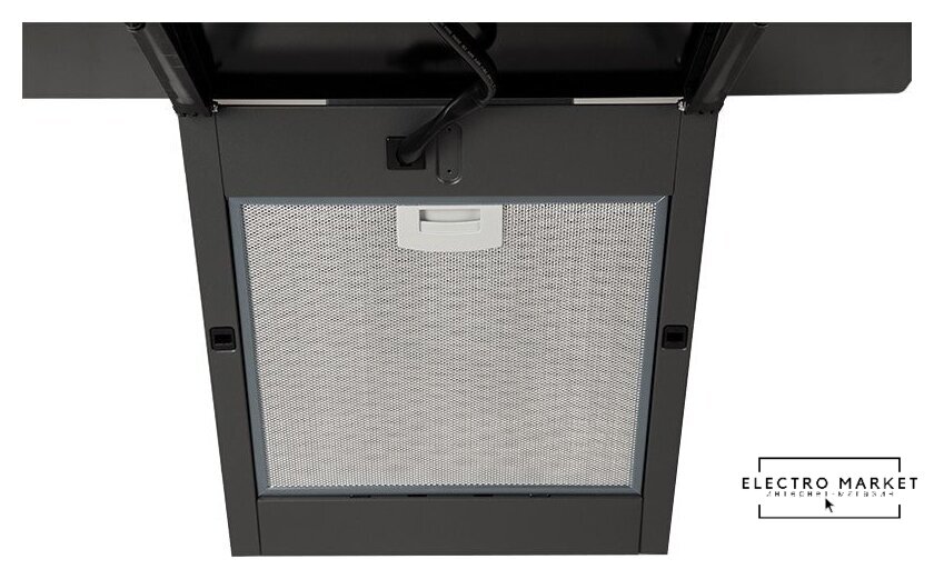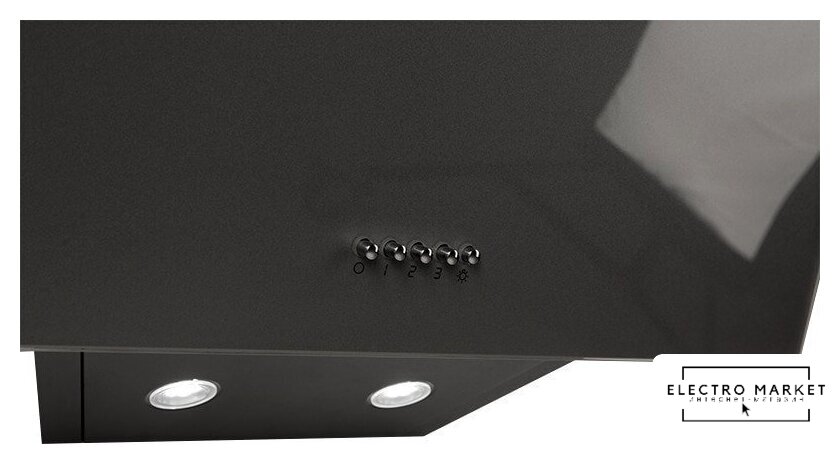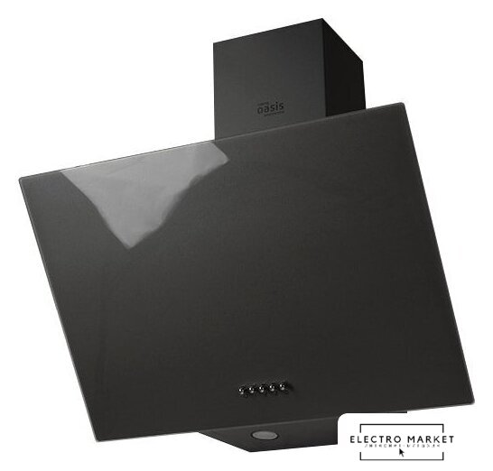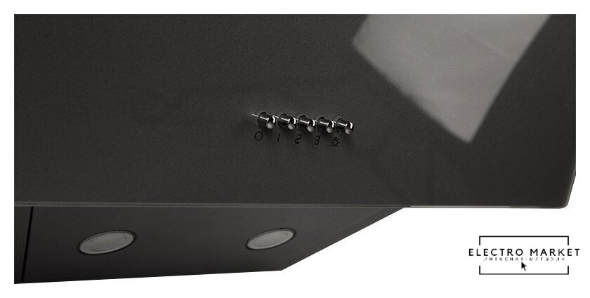конструкция наклонная, монтаж настенный, ширина 60 см, управление электронное/сенсорное, производительность вытяжки 450 м³/ч, производительность мотора 900 м³/ч, цвет черный