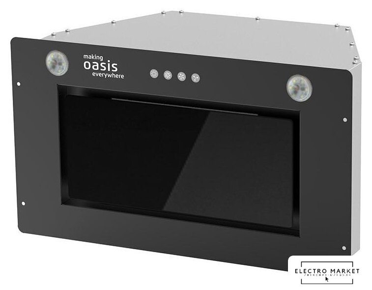 конструкция наклонная, монтаж настенный, ширина 59.7 см, управление сенсорное, производительность мотора 950 м³/ч, цвет черный