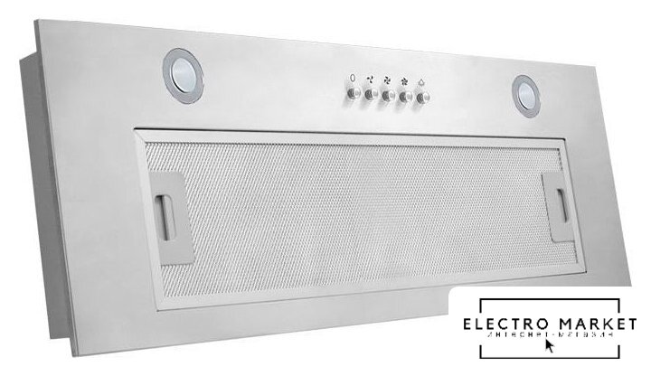 конструкция скрытая, монтаж для встраивания, ширина 52 см, управление механическое/кнопочное, производительность мотора 850 м³/ч, цвет черный