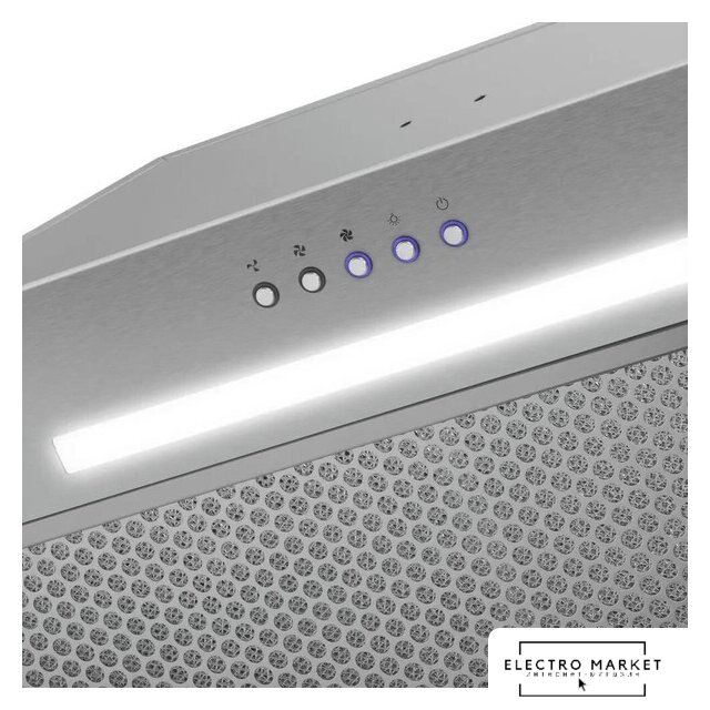 конструкция коробчатая, монтаж настенный, ширина 40 см, управление механическое/кнопочное, производительность мотора 700 м³/ч, цвет нержавеющая сталь