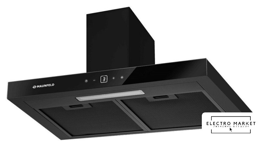 конструкция скрытая, монтаж для встраивания, ширина 59.6 см, управление механическое/кнопочное, производительность мотора 1000 м³/ч, цвет черный