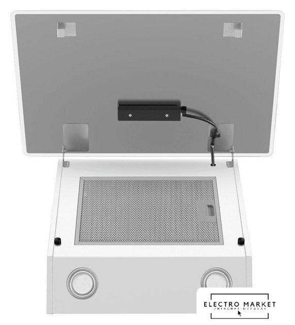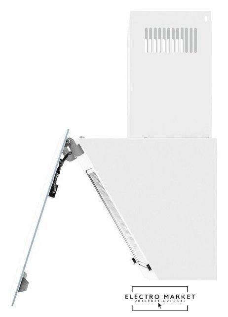конструкция наклонная, монтаж настенный, ширина 60 см, управление сенсорное, производительность мотора 1000 м³/ч, цвет белый