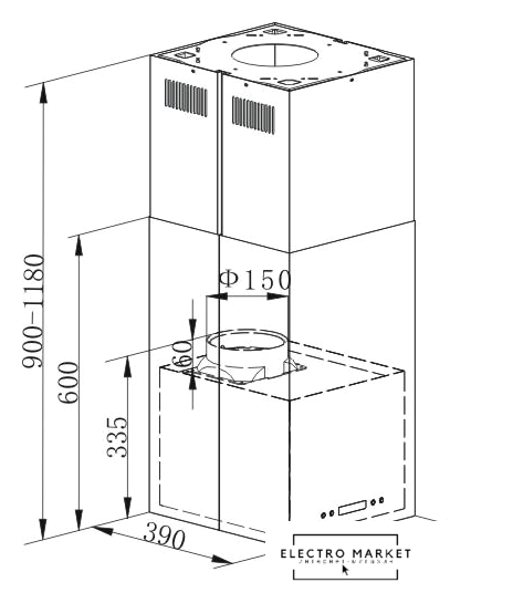 конструкция коробчатая, монтаж островной, управление электронное/кнопочное, производительность мотора 1050 м³/ч, ширина 35.15 см