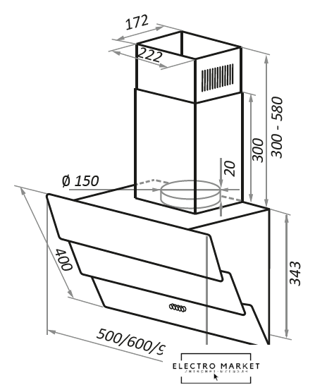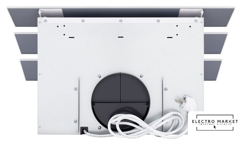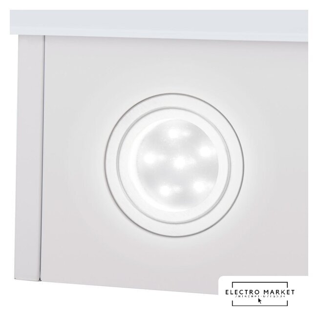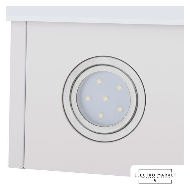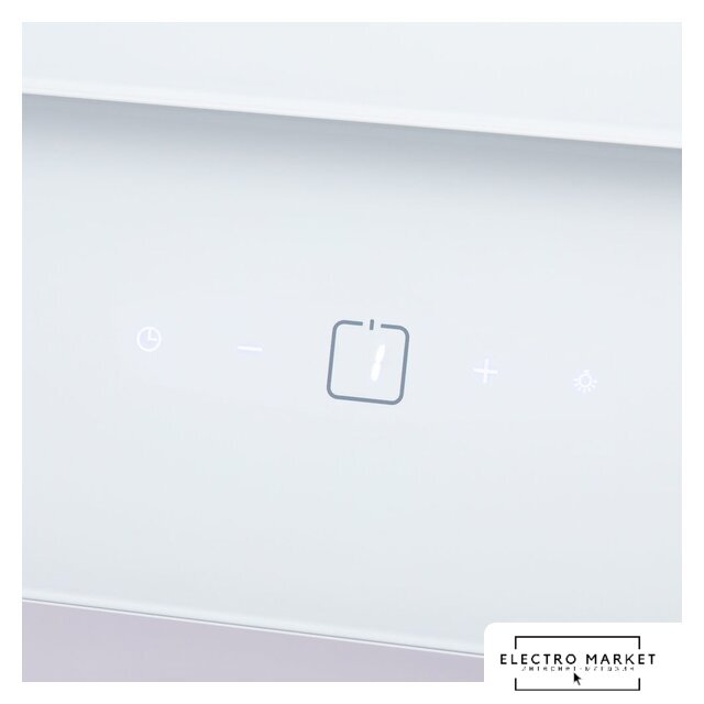 конструкция купольная, монтаж настенный, ширина 60 см, управление электронное/кнопочное, производительность мотора 900 м³/ч, цвет белый