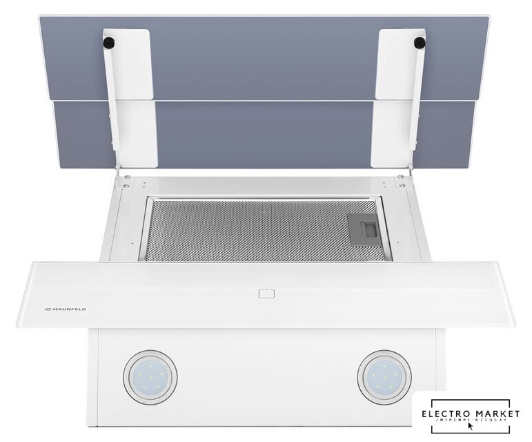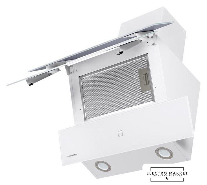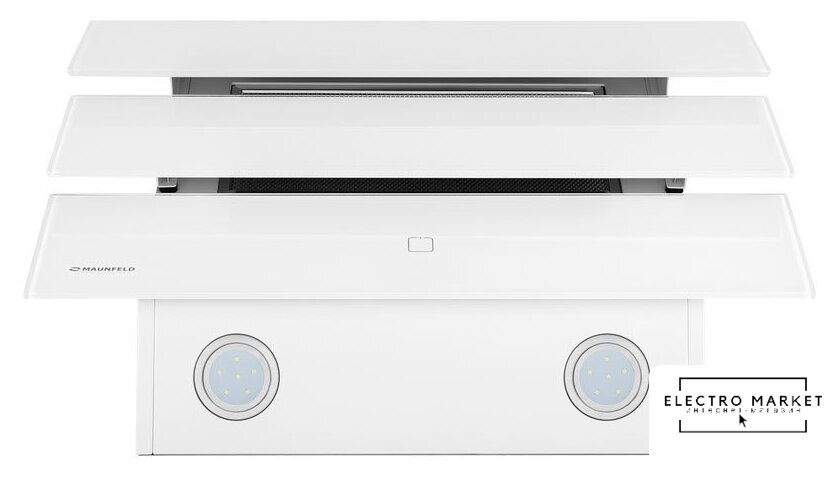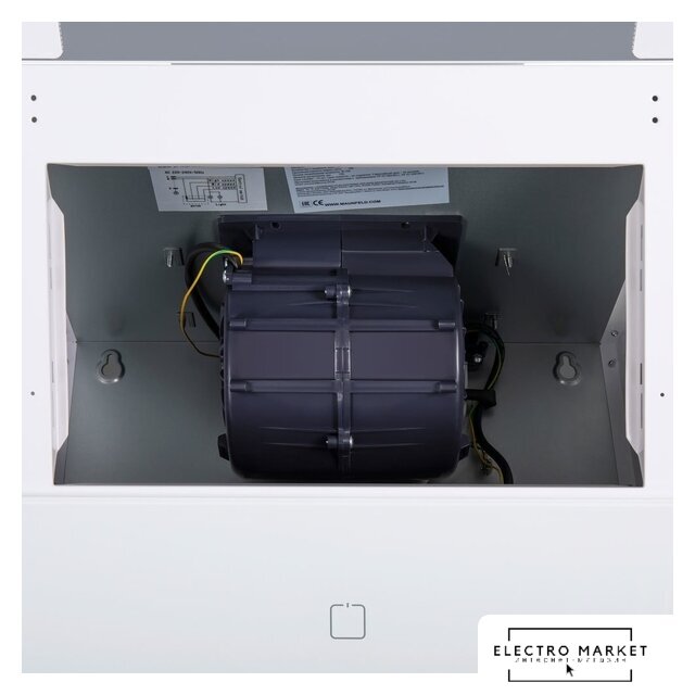 конструкция скрытая, монтаж для встраивания, ширина 60 см, управление механическое/кнопочное, производительность мотора 900 м³/ч, цвет белый