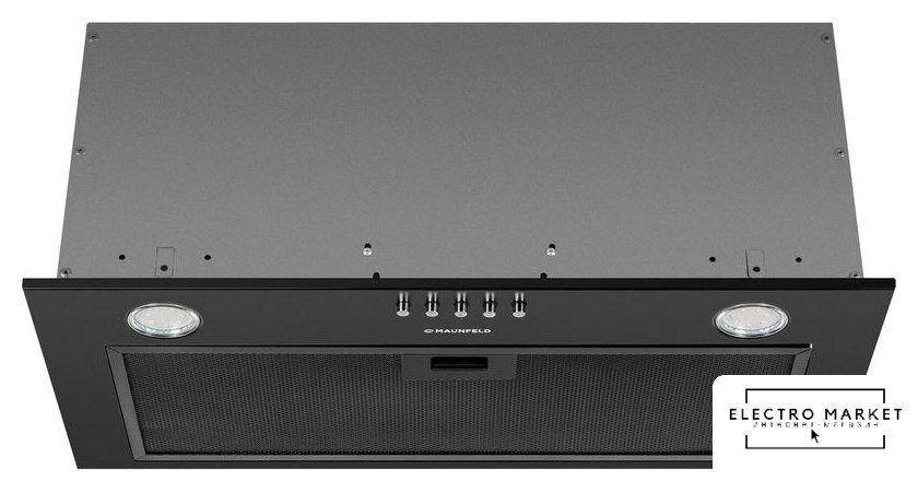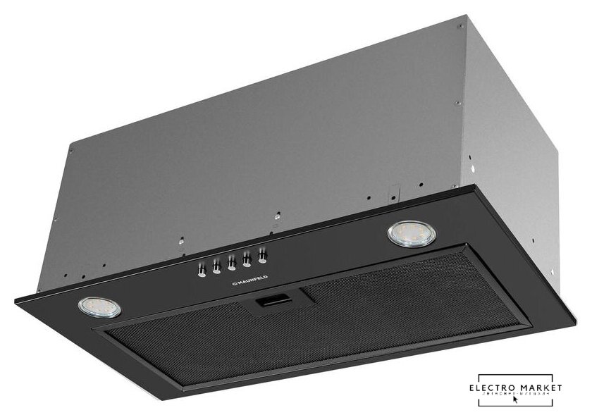 конструкция телескопическая, монтаж для встраивания, ширина 60 см, управление механическое/кнопочное, производительность мотора 520 м³/ч, цвет черный