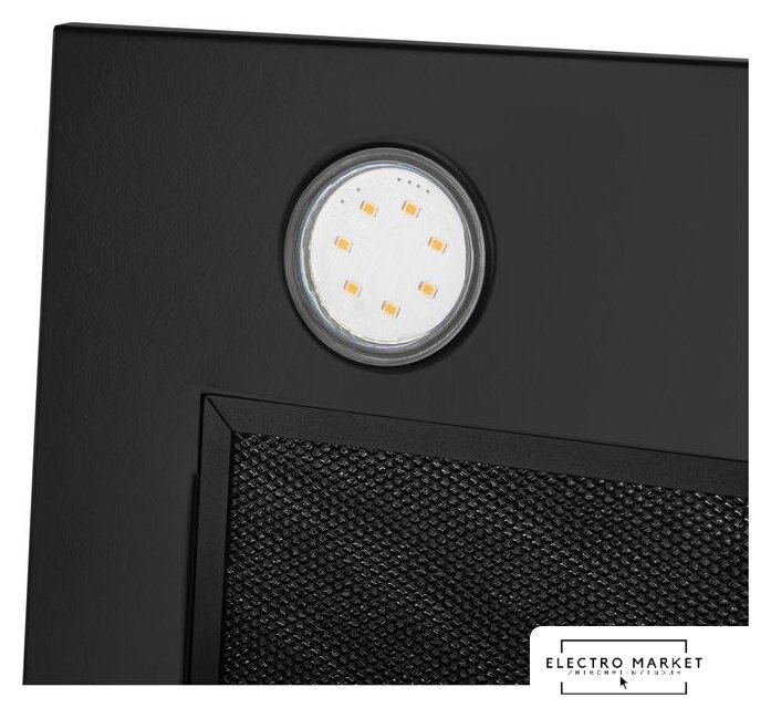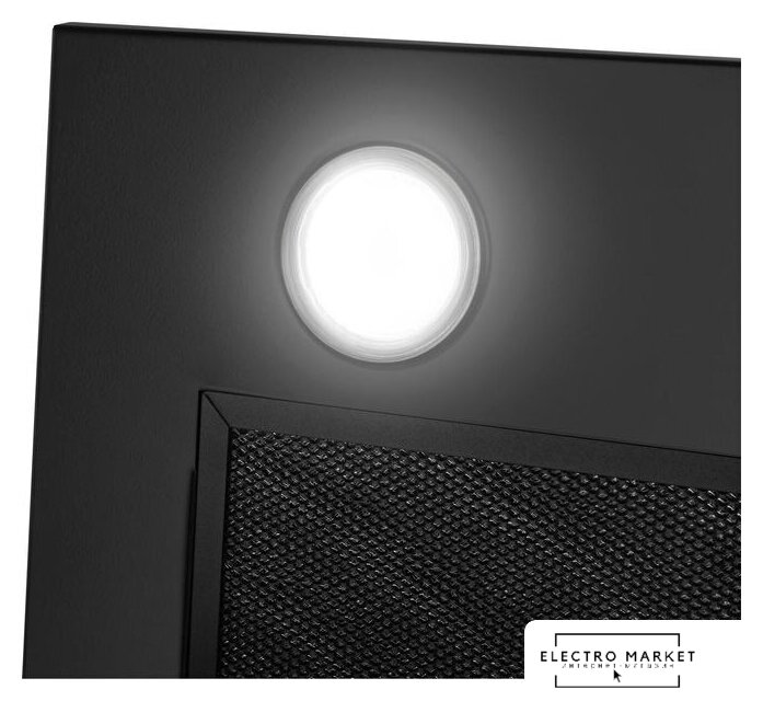 конструкция наклонная, монтаж настенный, ширина 59 см, управление электронное/кнопочное, производительность мотора 700 м³/ч, цвет нержавеющая сталь/черный