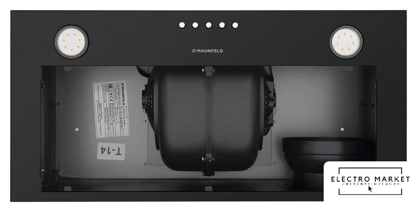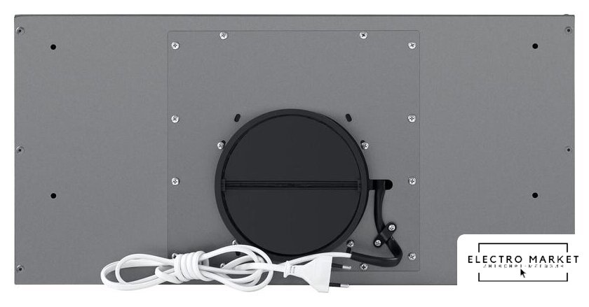конструкция купольная, монтаж настенный, ширина 89 см, управление механическое/кнопочное, производительность мотора 650 м³/ч, цвет черный