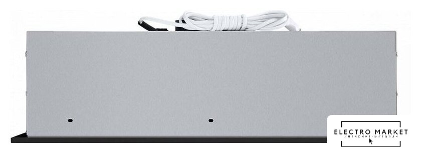 конструкция скрытая, монтаж для встраивания, ширина 59.8 см, управление механическое/кнопочное, производительность мотора 1050 м³/ч, цвет черный