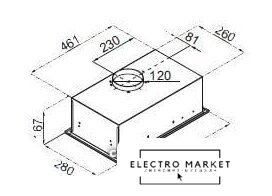 конструкция скрытая, монтаж для встраивания, ширина 44.5 см, управление механическое/кнопочное, производительность вытяжки 305 м³/ч, производительность мотора 900 м³/ч, цвет белый