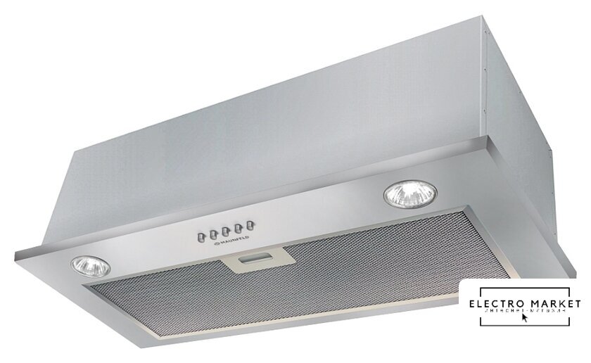 конструкция скрытая, монтаж для встраивания, ширина 52 см, управление механическое/кнопочное, производительность мотора 850 м³/ч, цвет белый