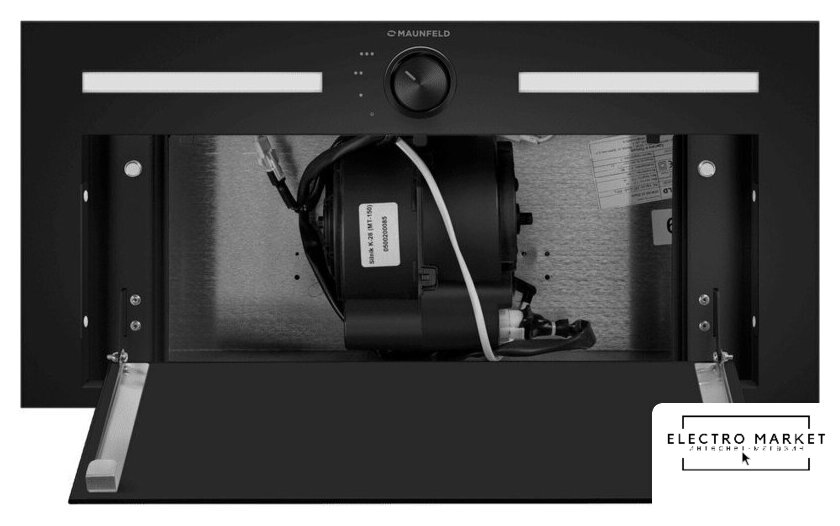конструкция скрытая, монтаж для встраивания, ширина 59.6 см, управление механическое/кнопочное, производительность мотора 1000 м³/ч, цвет белый