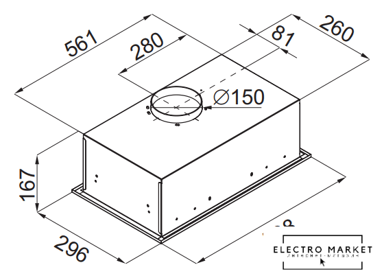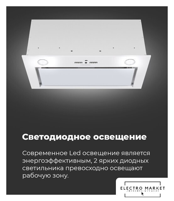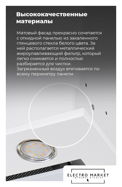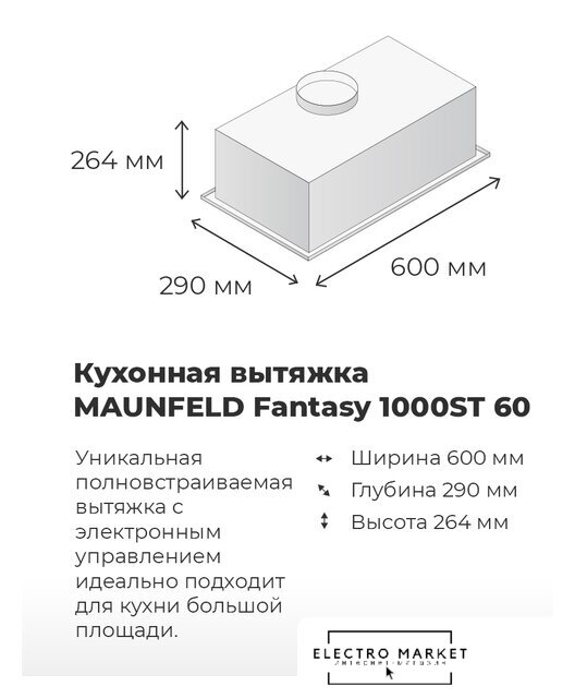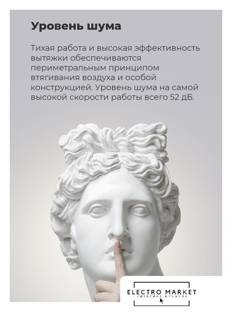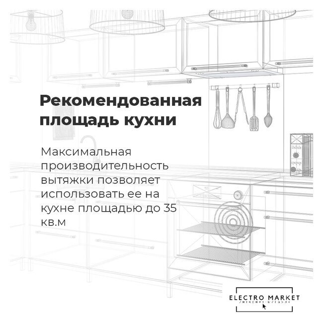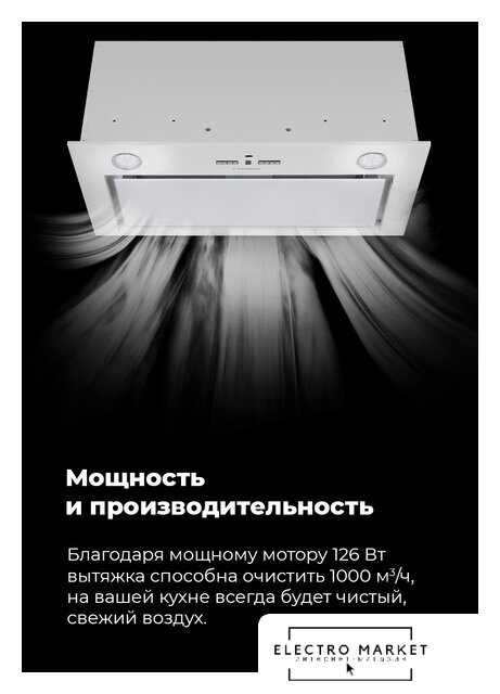 конструкция Т-образная, монтаж настенный, управление электронное/кнопочное, производительность мотора 1200 м³/ч, ширина 60 см
