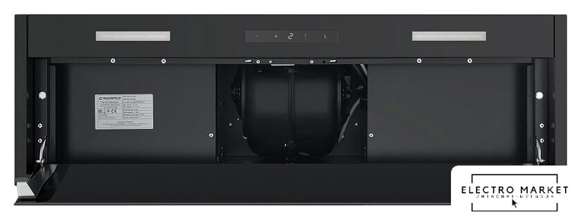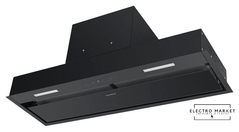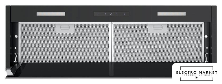 конструкция коробчатая, монтаж островной, ширина 39 см, управление сенсорное, производительность мотора 1260 м³/ч, цвет черный