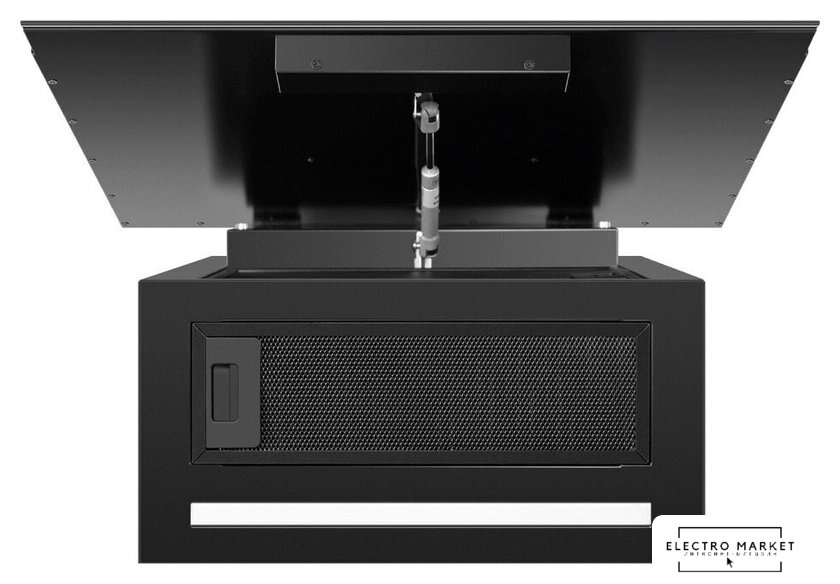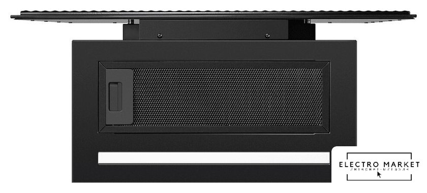 конструкция скрытая, монтаж настенный/для встраивания, ширина 54 см, управление электронное/кнопочное, производительность вытяжки 580 м³/ч, цвет черный