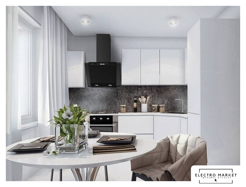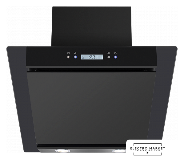 конструкция купольная, монтаж настенный, ширина 59.8 см, управление сенсорное, производительность мотора 800 м³/ч, цвет черный