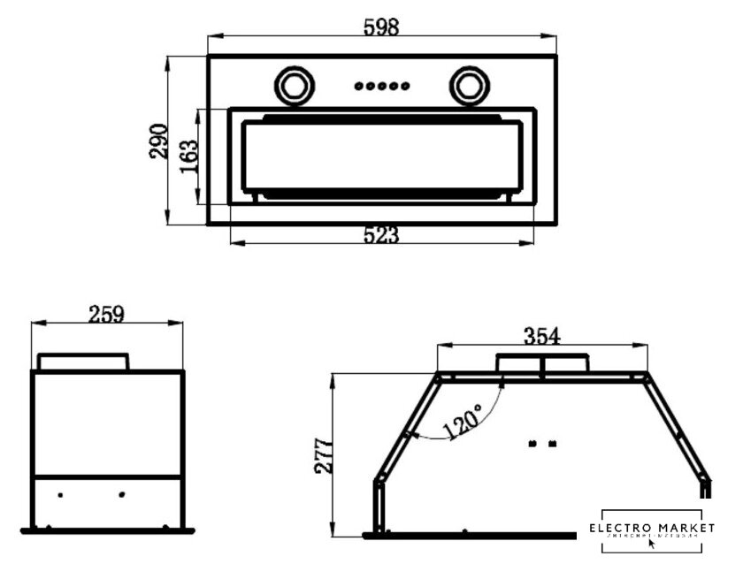 конструкция скрытая, монтаж для встраивания, ширина 52 см, управление сенсорное, цвет черный