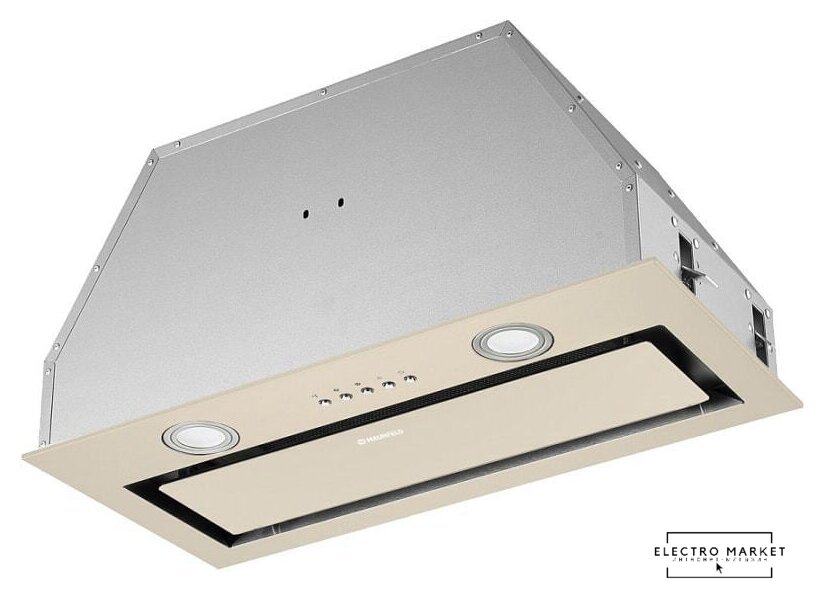 конструкция скрытая, монтаж для встраивания, ширина 50 см, управление сенсорное, производительность мотора 381 м³/ч, цвет серебристый/черный