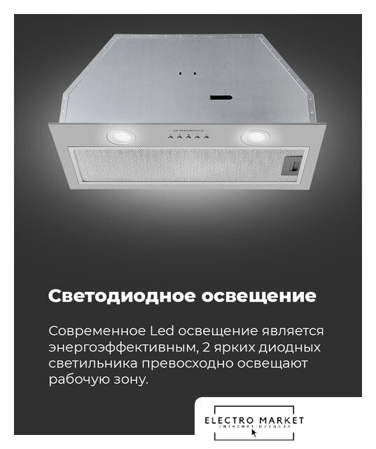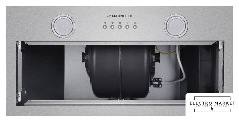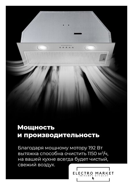 конструкция скрытая, монтаж для встраивания, ширина 52 см, управление электронное/кнопочное, производительность мотора 800 м³/ч, цвет кремовый