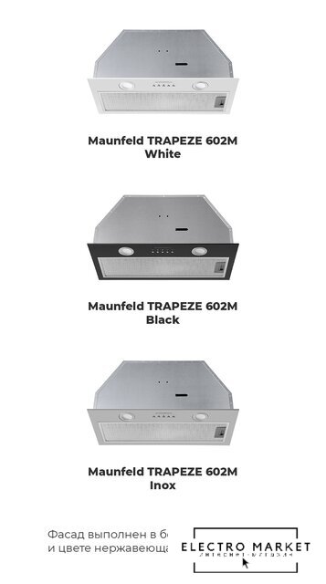 конструкция скрытая, монтаж для встраивания, ширина 52 см, управление сенсорное, производительность мотора 850 м³/ч, цвет белый