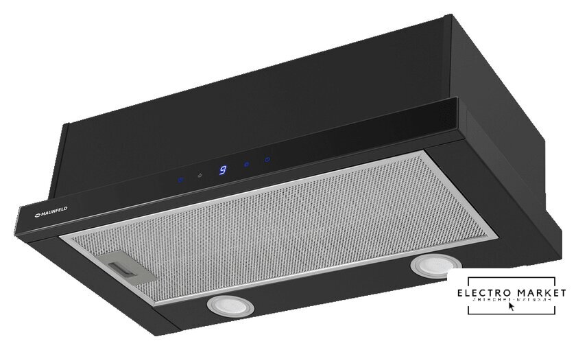 конструкция наклонная, монтаж настенный, ширина 50 см, управление сенсорное, производительность мотора 900 м³/ч, цвет черный