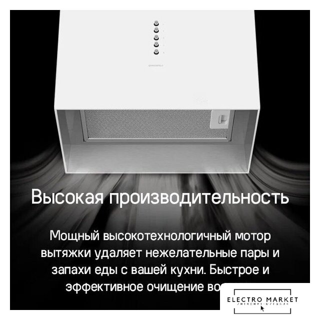 конструкция коробчатая, монтаж настенный, ширина 40.2 см, управление электронное/кнопочное, производительность мотора 1150 м³/ч, цвет белый