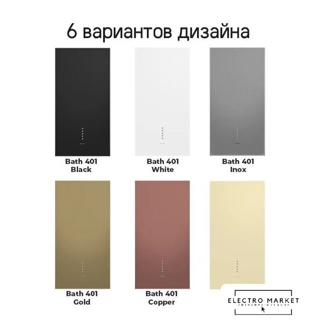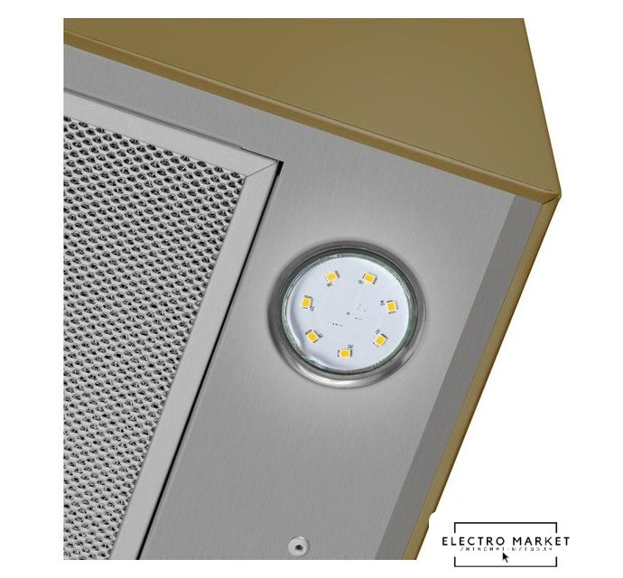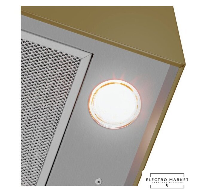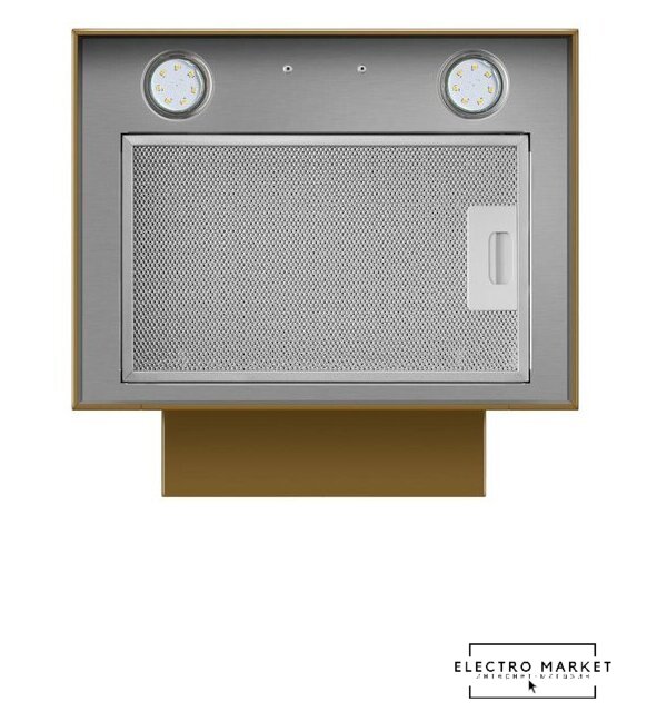конструкция коробчатая, монтаж настенный, ширина 35 см, управление механическое/кнопочное, производительность мотора 1200 м³/ч, цвет золотой