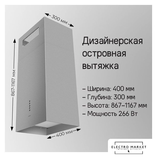 конструкция скрытая, монтаж для встраивания, ширина 90 см, управление электронное, производительность вытяжки 400 м³/ч, производительность мотора 850 м³/ч, цвет нержавеющая сталь
