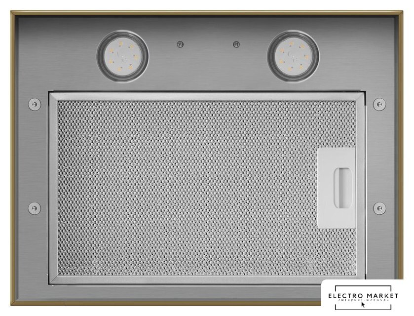 конструкция скрытая, монтаж для встраивания, ширина 52.3 см, управление электронное/кнопочное, производительность вытяжки 600 м³/ч, производительность мотора 1300 м³/ч, цвет нержавеющая сталь
