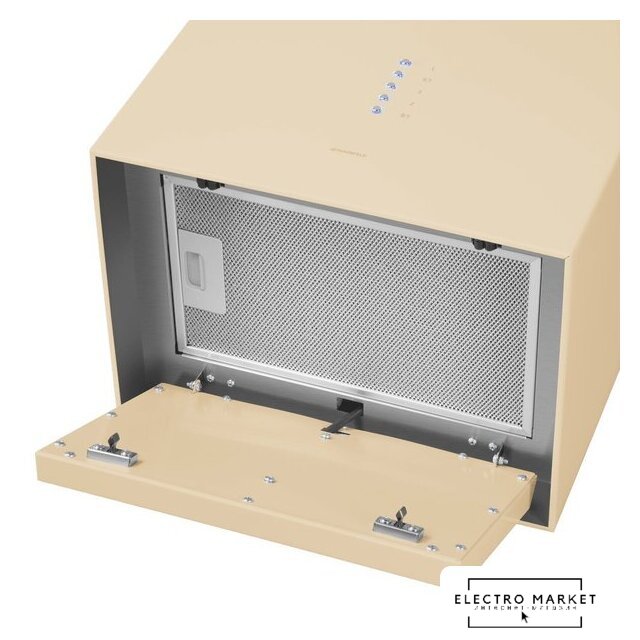конструкция скрытая, монтаж для встраивания, ширина 54 см, управление электронное/кнопочное, производительность вытяжки 365 м³/ч, цвет белый