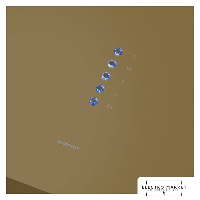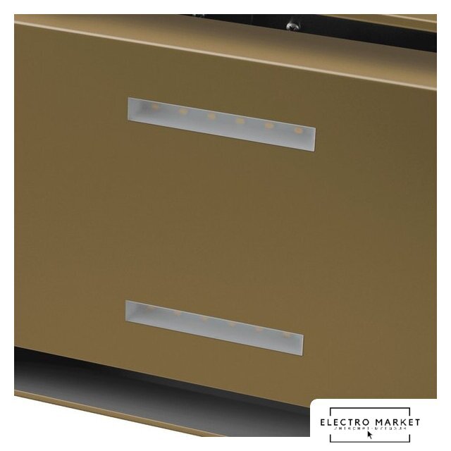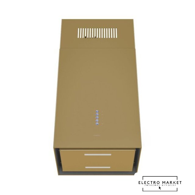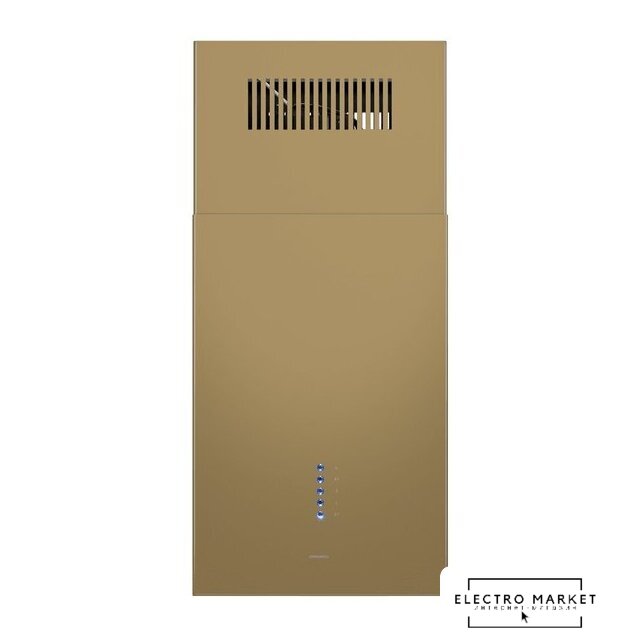 конструкция купольная, монтаж настенный, ширина 59.8 см, управление электронное/кнопочное, производительность вытяжки 500 м³/ч, цвет бежевый/латунь